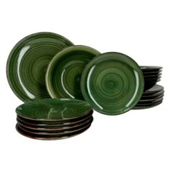 - 18-tlg. Teller Set Waldi 6x Kuchenteller, 6x Suppenteller & 6x Speiseteller in Dunkelgrün