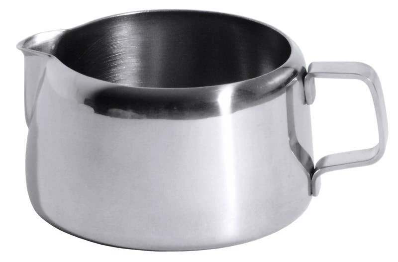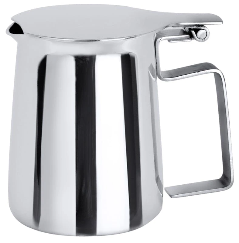 Sahnegießer, in klassischer Milchkannenform, aus Edelstahl 18/10, hochglänzend poliert, mit aufklappbarem Deckel, hochwertig verarbeitet