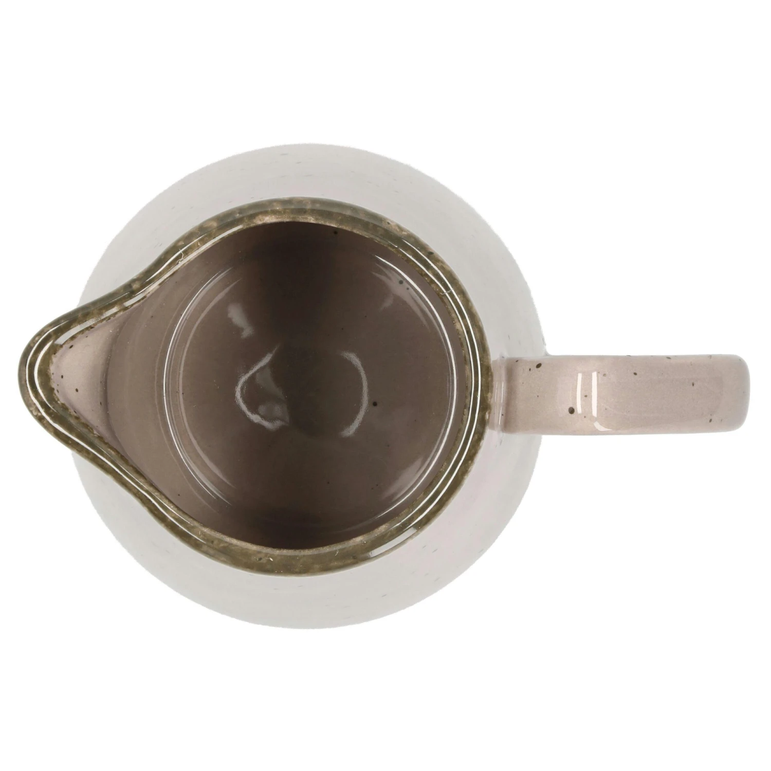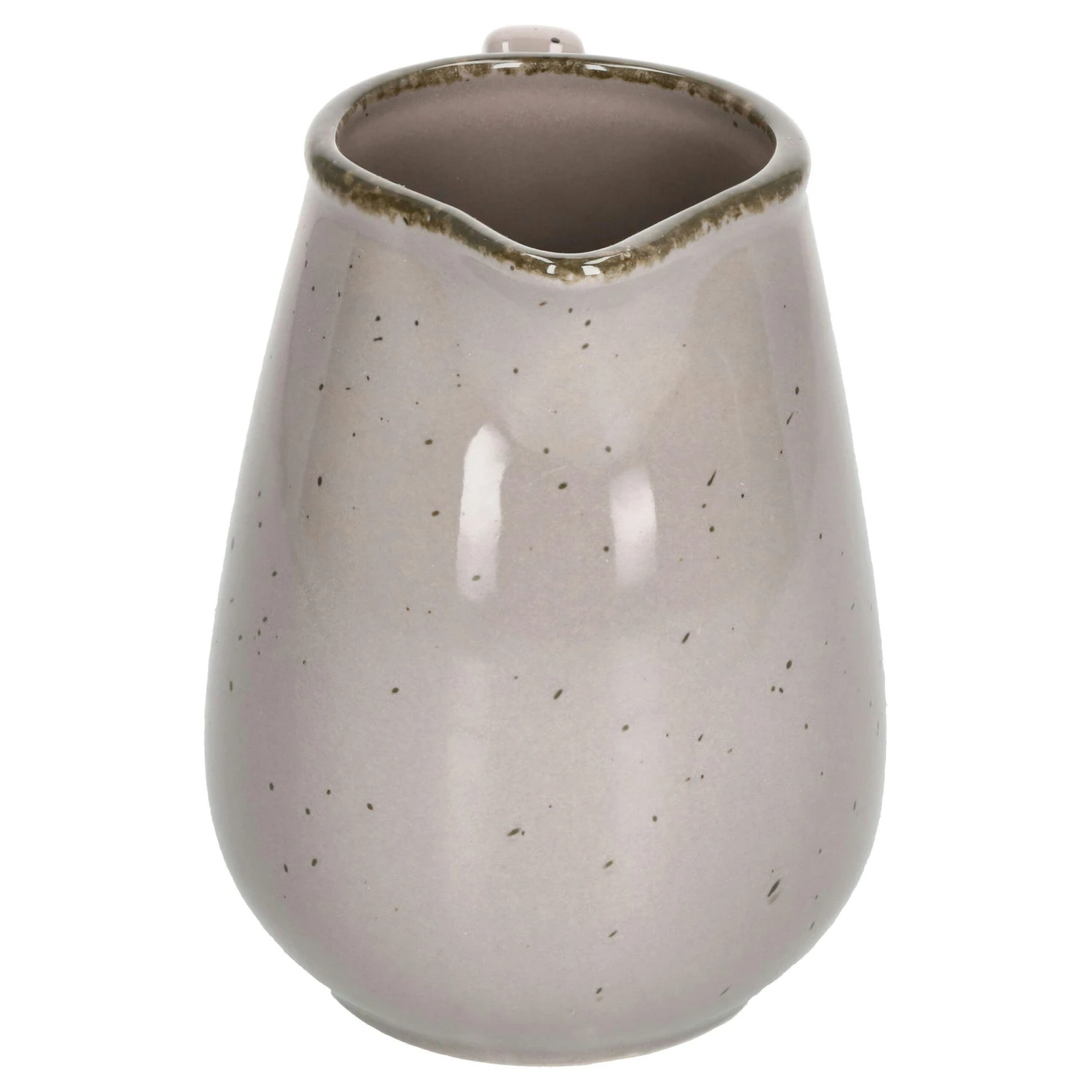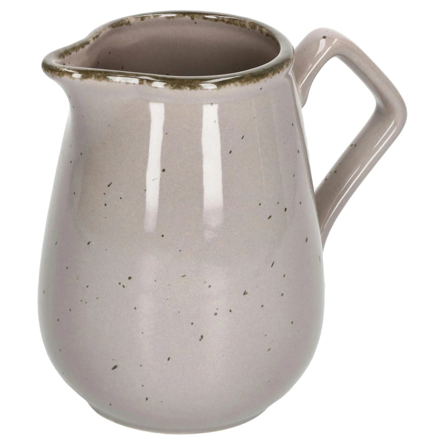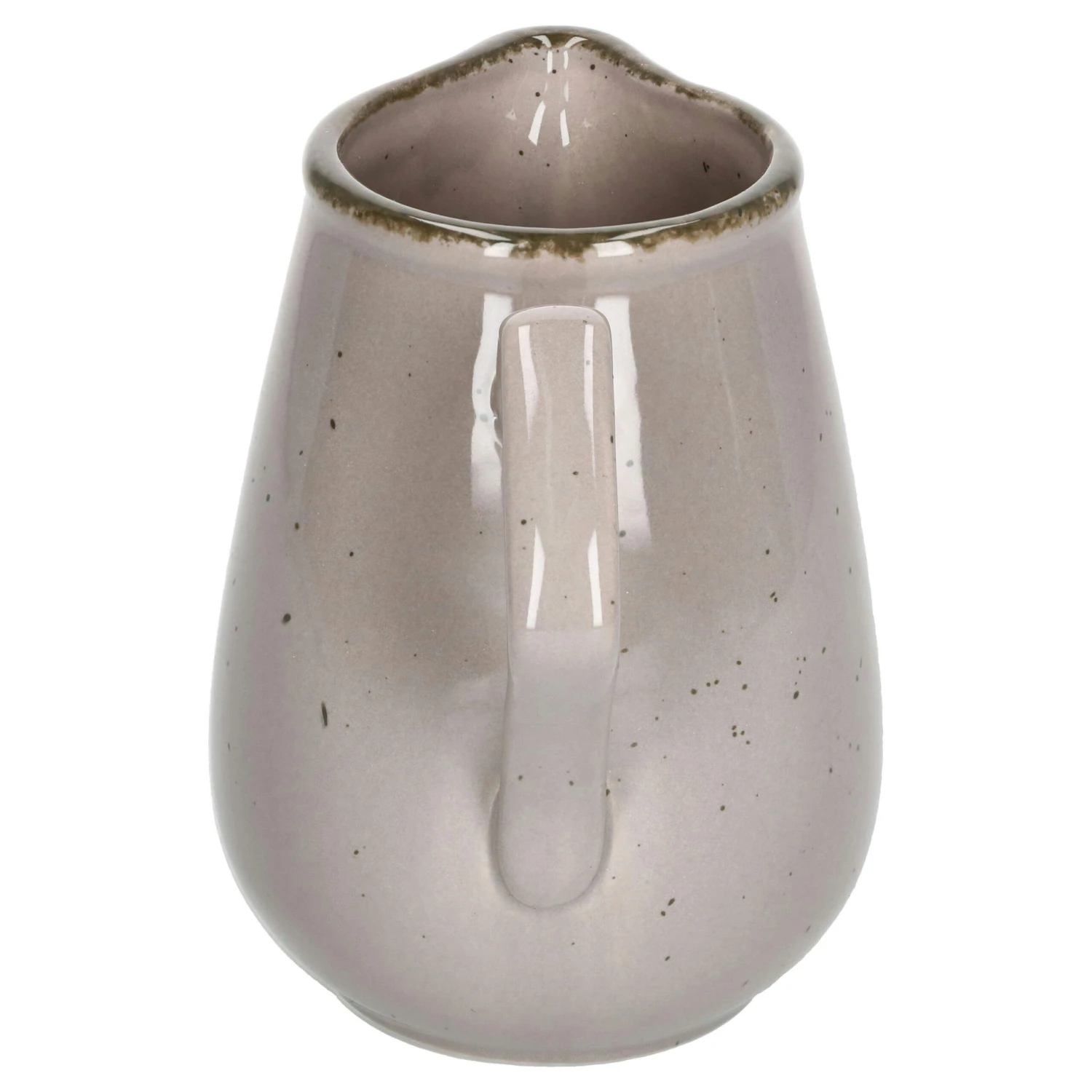 - Das Kännchen ist in einem Mittelgrau gehalten, welcher durch braune Punkte und einen schmalen braunen Rand im Used-Look an der Öffnung vervollständigt wird