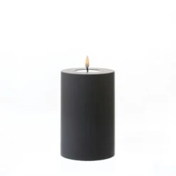 LED Stumpenkerze MIA – Kunststoff – realistische 3D Flamme – H: 15cm – D: 10cm – für Außen – grau